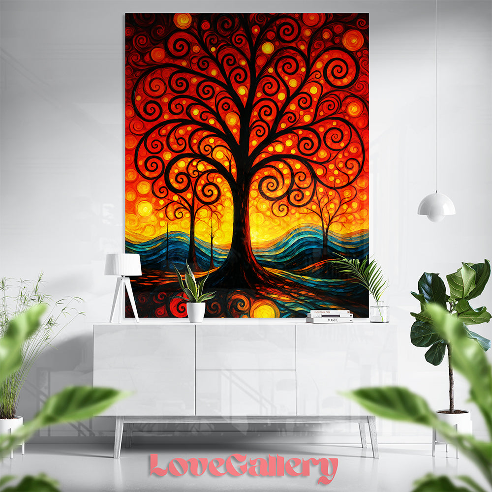 Le style fusionne la symbolique spirituelle de l’arbre de vie avec l’esthétique abstraite contemporaine, donnant naissance à une œuvre visuellement captivante et énergisante. Idéal pour insuffler chaleur, vitalité et profondeur à n’importe quelle pièce.
