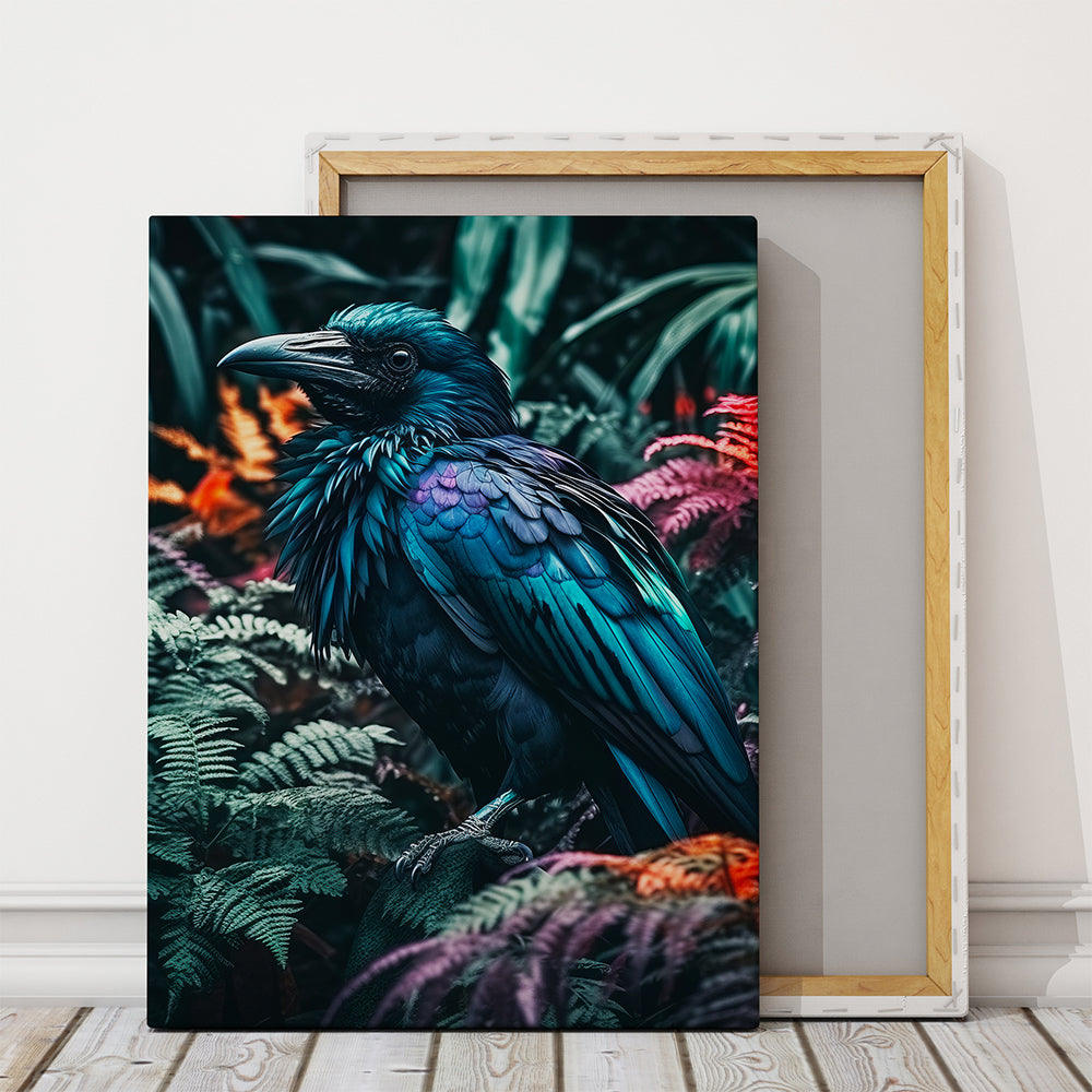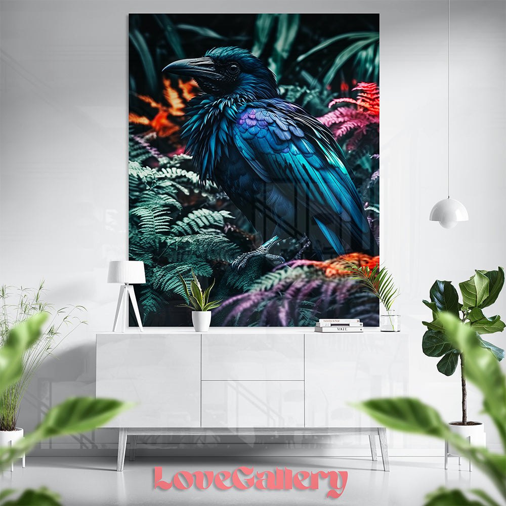 Tableau corbeau noir et bleu – Jungle mystique