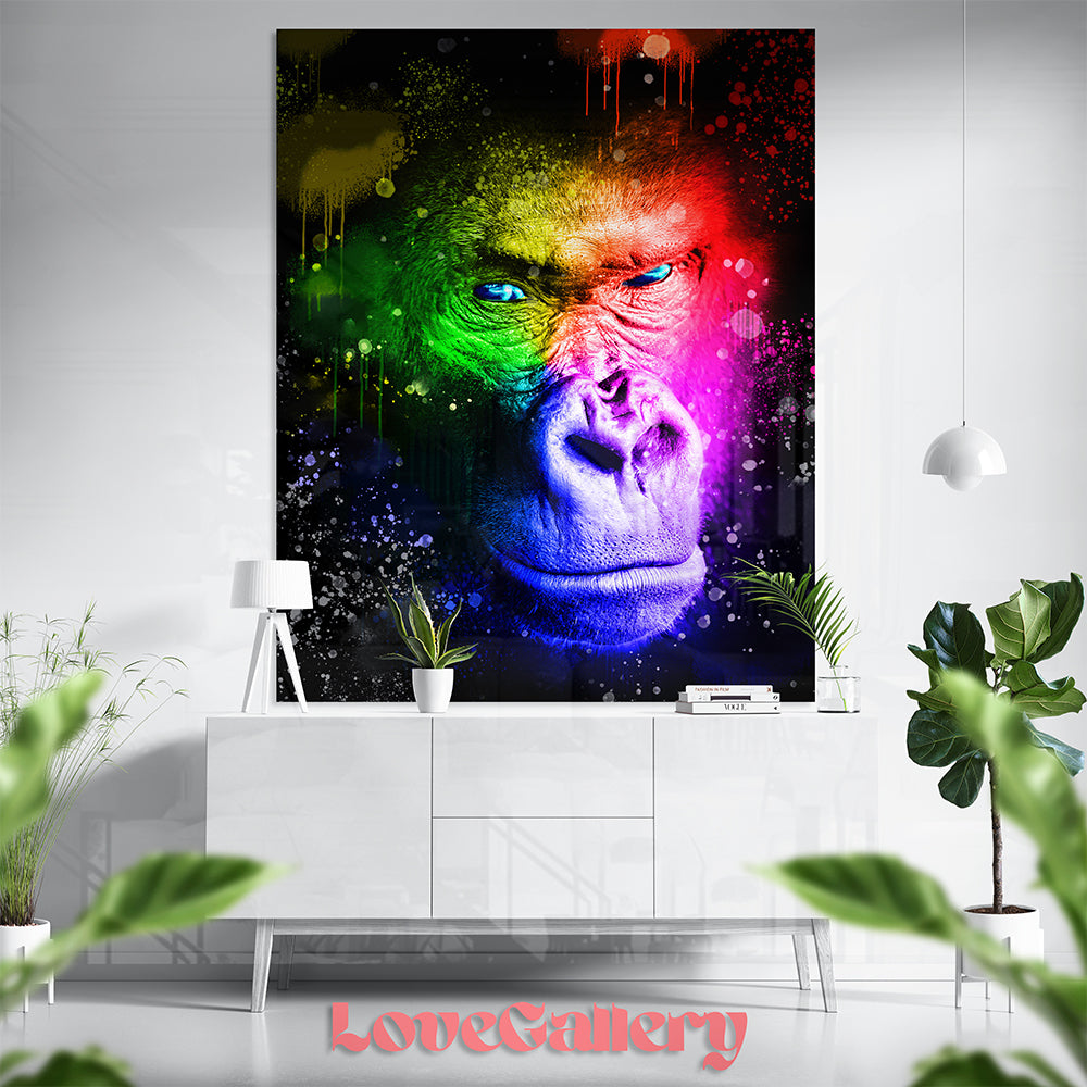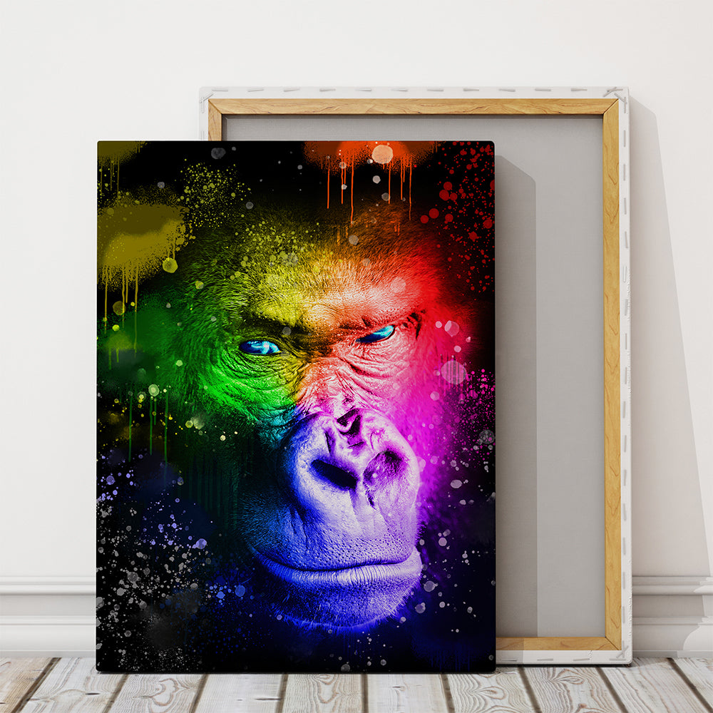 Une intensité animale capturée dans une tempête de couleurs — ce gorille multicolore impose le respect et le style.